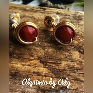Elegant earrings by Alquimia featuring a stunning red design wrapped in gold. Perfect for adding a touch of sophistication to any outfit.