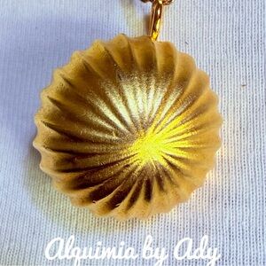 Elegant gold pendant with white accents. Layered design. Perfect for any occasion.