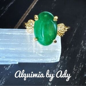 Alquimia Green and Gold Cabochon Ring untreated emerald