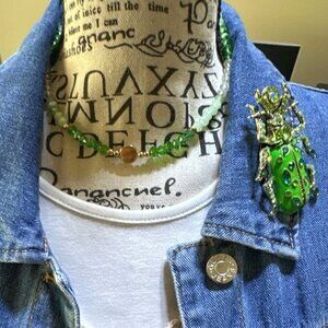 Elegant green beaded necklace with gold accents. Perfect for adding a touch of sophistication.