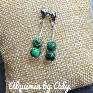Elegant green earrings by Alquimia, featuring a sleek silver design. Perfect for adding a touch of sophistication to any outfit.