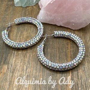 Stunning iridescent hoop earrings. Sparkling design. Perfect for any occasion.