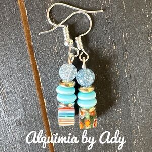 Add a pop of color to your outfit with these vibrant earrings from Alquimia. Featuring a mix of blue, red, and gold beads, these earrings are perfect for any occasion.