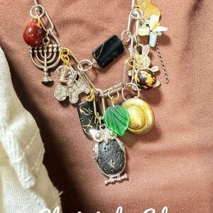 Unique charm necklace by Alquimia. Features multicolor beads and pendants. Perfect for adding a statement to any outfit.