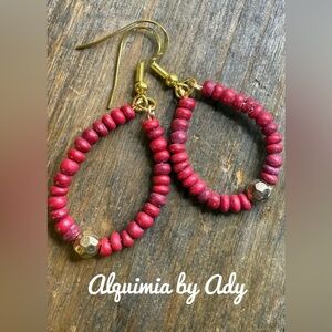 Elegant red beaded earrings with gold accents. Perfect for any occasion.