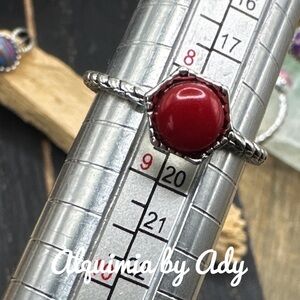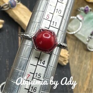 Alquimia Red and Silver Hexagonal Gemstone Ring coral
