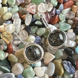 Elegant Alquimia earrings with a silver finish. Features a striking black stone centerpiece. Perfect for any occasion.