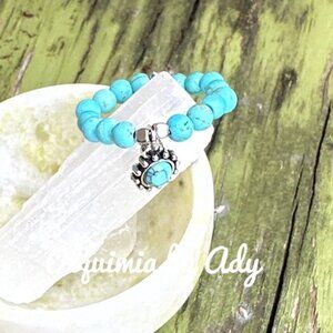 This elegant Alquimia bracelet showcases a harmonious blend of blue and silver hues, featuring a strand of vibrant blue beads. A striking silver charm adds a touch of sophistication, making it a standout accessory for any occasion.