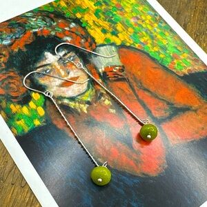 Elegant silver earrings with vibrant green beads. Perfect for adding a pop of color.