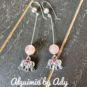 Alquimia Silver and Pink strawberry quartz Elephant Earrings extra long