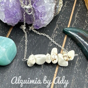 Elegant necklace with white stones. Features a delicate silver chain. Perfect for any occasion.