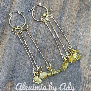 Elegant earrings with yellow stones and silver chains. Perfect for any occasion.