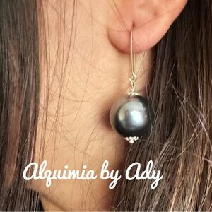 Elegant turquoise earrings by Alquimia, featuring a stunning gold accent. Perfect for adding a pop of color to any outfit.