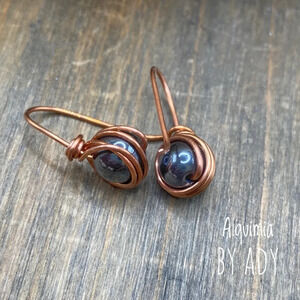 Elegant copper wire earrings with black stone accents. Perfect for any occasion.