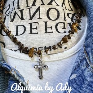 Alquimia by Ady Beaded Necklace with Cross Pendant tiger’s eye
