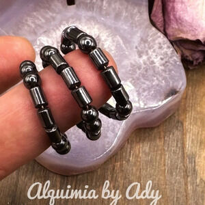 Elegant black beaded ring with gold accent. Perfect for any occasion.