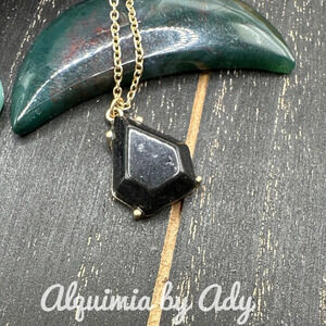 Elegant black pendant on a gold chain. Perfect for any occasion.