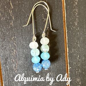 Elegant earrings with gradient blue and white beads. Perfect for any occasion.