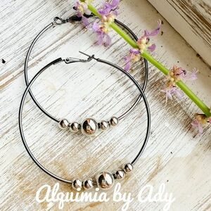 Elegant silver hoop earrings with bead accents. Perfect for any occasion.