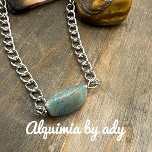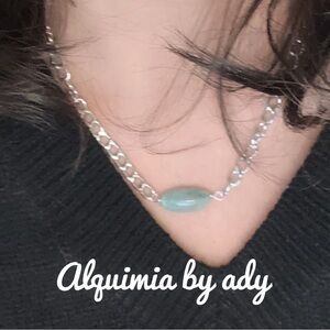 Elegant silver chain with a unique blue stone centerpiece. Perfect for any occasion.
