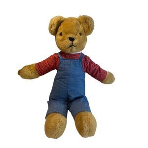 Alresford Crafts LTD Honey bear soft plush stuffed toy 19” red shirt overalls.