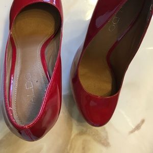 Aldo Red platform heels. Worn twice in in Vegas. That explains the Scuffs in front of heel.