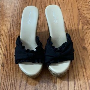 🔥🔥🔥🔥🔥HOT 🔥🔥🔥🔥🔥 Black ruffle slip on wedge. Offers welcome.
