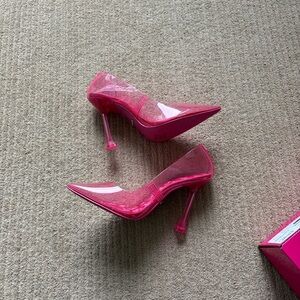 New with box, never worn, size 8.5, true to size. I’m between 8 and 8.5, and 8.5 fits well. Barbie Pink. All measurements are approximate.
