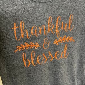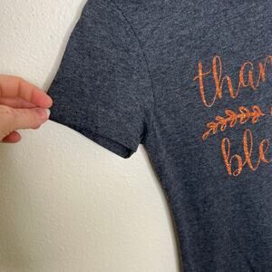 Alstyle Dark Gray Thanksgiving Tee Junior Small. Preowned and in great condition. Shirt is heathered gray and says "thankful & blessed". Approx measurements in photos.