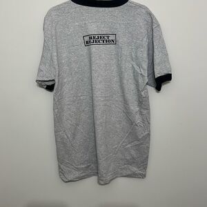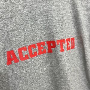 Crafted from soft, breathable cotton, the heather gray body is accented by contrasting black ribbing at the collar and sleeve cuffs, a signature detail of the classic ringer style. The bold "ACCEPTED" graphic across the chest adds a rebellious, collegiate vibe, making it perfect for fans of the cult film or anyone channeling early 2000s cool. Whether worn solo or layered under a jacket, this tee delivers effortless throwback style with everyday comfort.