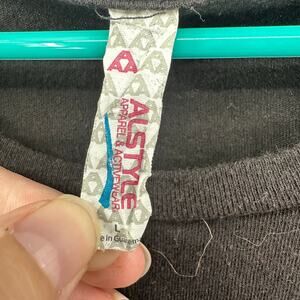 Alstyle Size Large Short Sleeve Crewneck T-Shirt Black Firefly Print Activewear