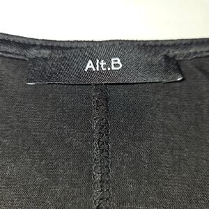 Alt B Womens Small Peplum Top Metallic Lace Romantic Soft Glam Dark Feminine. In good, pre-owned condition with no noted rips, tears or stains. Measurements in description and in pictures with ruler. Please see pictures as they are considered part of the description.