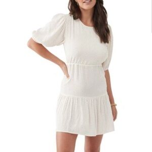 Alta Dot Print Open Back Minidress In Winter Cream With Tan/Brown Dots