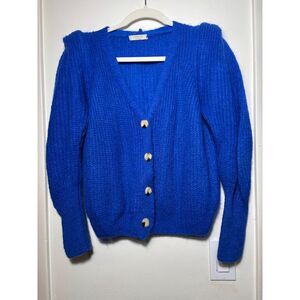 AltaMira Milano Cardigan Sweater Size Medium Royal Blue Mohair Puff Sleeve Knit