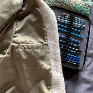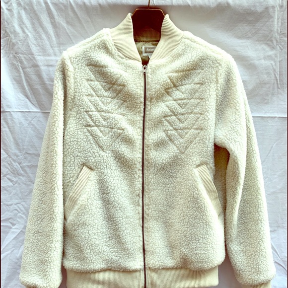 Ivory Sherpa oversized jacket with a sage liner complete with inside pocket!👀❣️ With a subtle diamond weave pattern on front