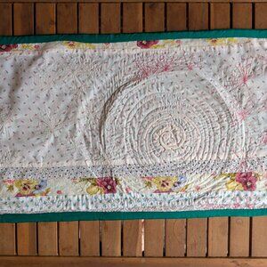 Hand and machine embroidery on assorted upcycled cotton fabrics with silk binding.