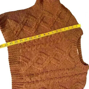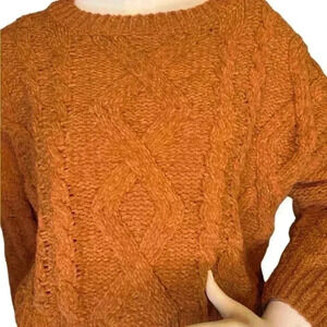This cozy sweater features a chunky cable knit design dawn the center and is slightly cropped to hit right at the waist in good condition.