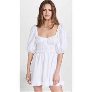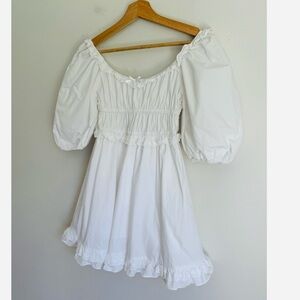 Altar’ State • Ruffle Trim Short Puff Sleeve Dress in White
