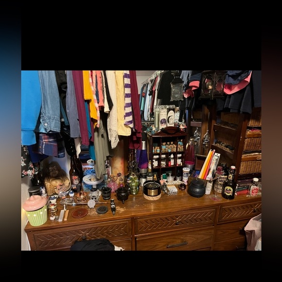 Variety of witchy altar items ranging from Buddha statues and candles to crystals and herbs. I probably have about 50 lbs of altar items. However I cannot keep it because I don’t have any room for it anymore. So if purchased I will put together a box of random altar items equaling out to 5lbs (Poshmark shipping limit). There are also items not pictured that I will include such as more crystals, necklaces, candles, and such but all altar stuff.
