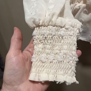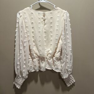 Altar'D State Women Chenille Polka Dot Peach Blouse S Puff Sleeve Coquette Twee