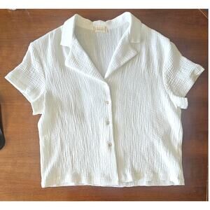 Altar'd State 100% Cotton White Button Down Blouse, Sz L NEW