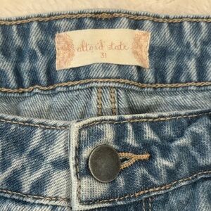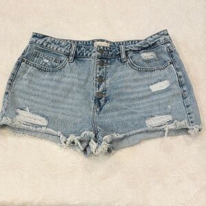 Altar’d State Size 31 (L 8-10) Denim Women’s Shorts, Exposed Button Fly, High Rise, Distressed. Preowned. Nice condition. No stains or flaws.