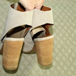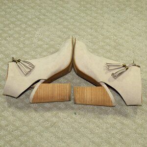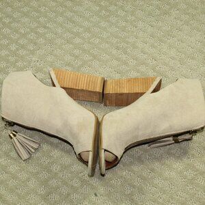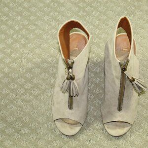 Altar'd State 8.5 Light Grey Faux Suede Zip Up Tassel Peep Toe 4.25" Heels