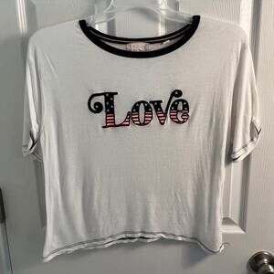 Altar’d State Short Sleeve Top Red White and Blue USA Embroidered “Love” Stars and Stripes