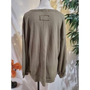Altar'd State Balloon Drop Sleeve Waffle Knit Thermal Pullover Womens Size L Green