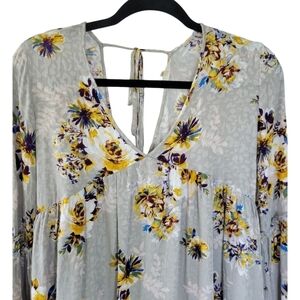 Altar’d State Bell Sleeve Boho Floral Tunic Mini Dress S Grey Fairy Garden Girl