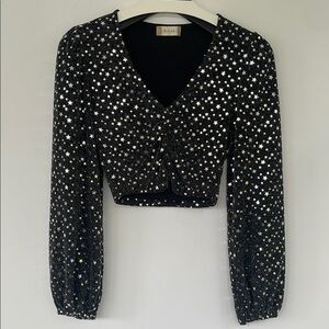 Altar'd State Bishop Sleeves Embellished Star Black Silver Crop Top Blouse Small