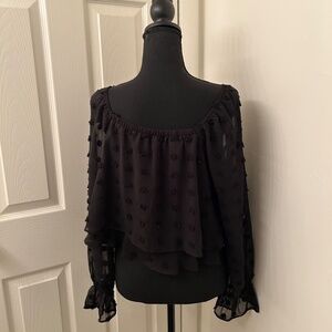 Altar'd State Black Cropped Long Sleeve Blouse With Textured Polka Dots Size Large. Excellent pre-loved condition! I am happy to provide additional photos or measurements upon request.