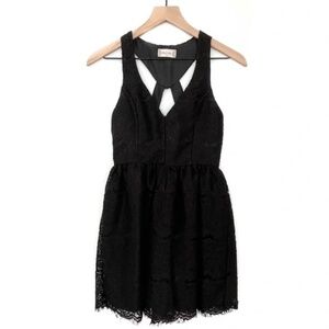 Altar’d State Lace Black Mini Formal Dress Homecoming Wedding Event Cut Out Strappy Fit N Flare Event Party Sleeveless XS