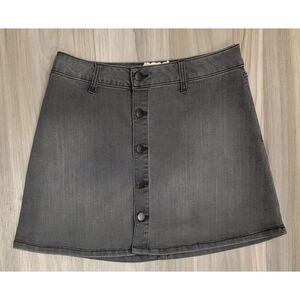Size: small Black distressed denim - button front design * Measurements in pics Top rated seller! Fast shipper! Smoke free home!
